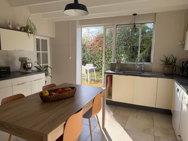 Beaucoup de charme pour cette landaise rénovée, située dans un cadre verdoyant à deux pas des commodités.Composée au rez de chaussée d'une belle entrée soulignée d'un plafond cathédrale, d'une grande pièce de vie, d'une cuisine équipée, d'un cellier, de deux chambres dont une avec dressing, d'un bureau, d'une grande salle de bains,d'un WC. Au premier étage une jolie mezzanine, trois chambres et un WC.